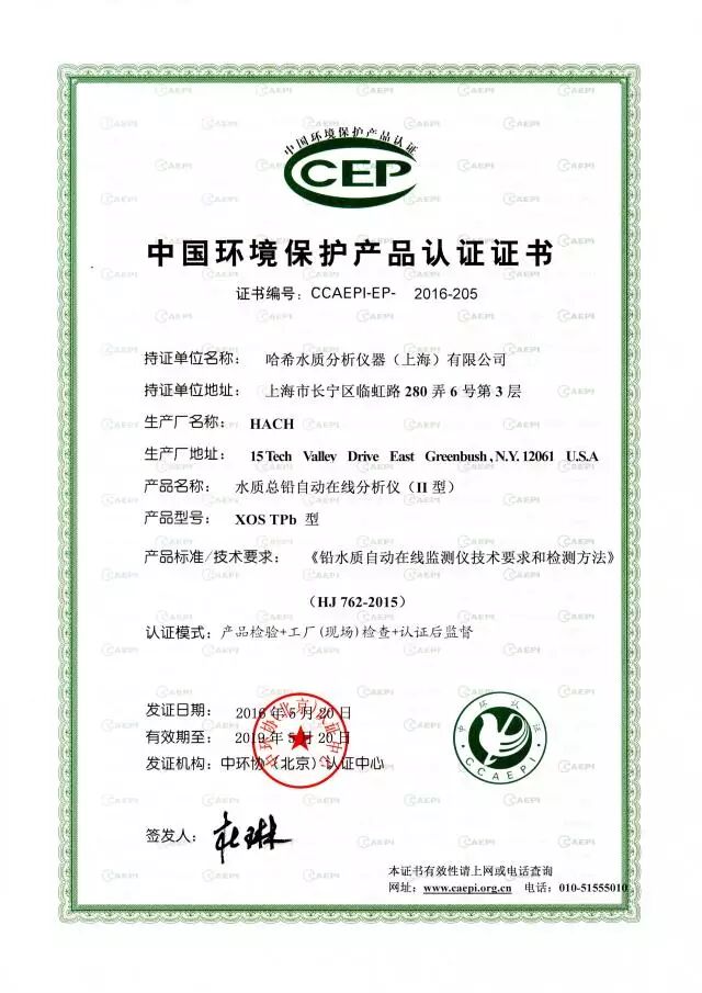 | 哈希公司的XOS总铅分析仪于2016年通过了环境保护部环境监测仪器质量监督检验中心的测试。 此次测试针对产品的分析性能开展了全面测试,从单台仪器的准确度,量漂零漂,到多台仪器的测量一致性都展开了测试。XOS产品性能满足环保部的全部要求。哈希公司成为第一批通过认证的唯一一家国际品牌。 XOS系列重金属分析仪(总铅,总砷,铅砷二合一)分析仪是哈希公司为了配合中国政府的重金属污染防治而为中国污染源市场量身打制的系列水质在线监控产品。该系列产品采用革新技术-单波长X射线荧光,物理方法,无需试剂,真正绿色环保。且产品维护量极低,适合无人值守的污染源排放点的实时监控。秉承哈希公司精准测量的一贯精神,产品测量精准,实际水样的测量同实验室方法对比性高。